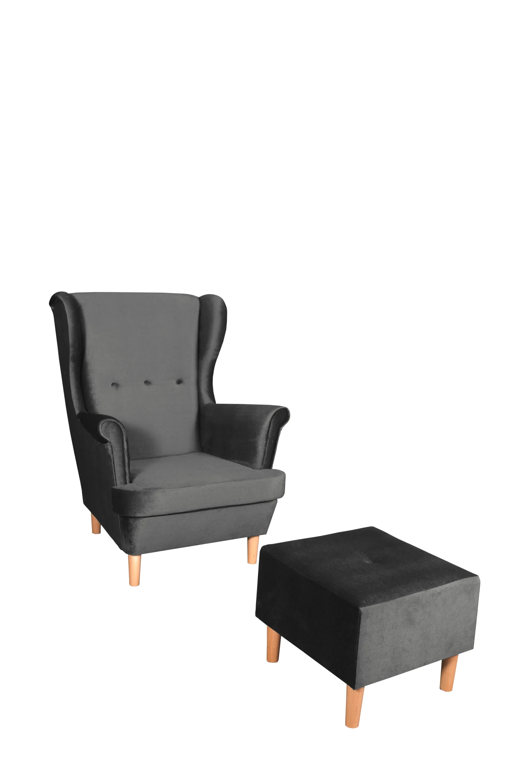 Wysokie oparcie z charakterystycznymi „uszami” – idealne do odpoczynku z książką lub filiżanką kawy