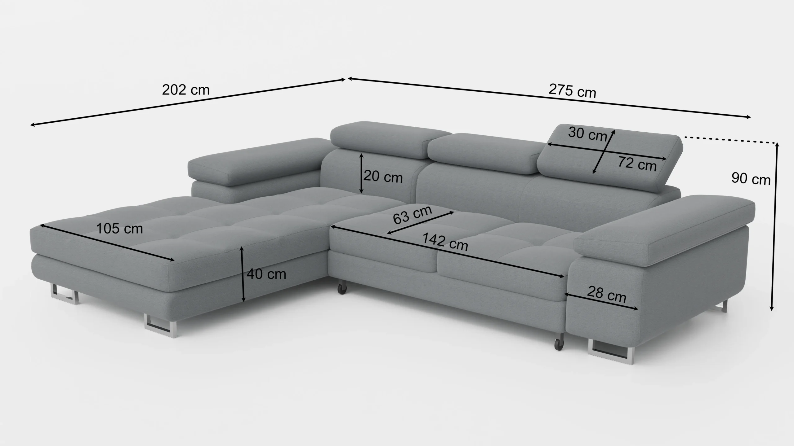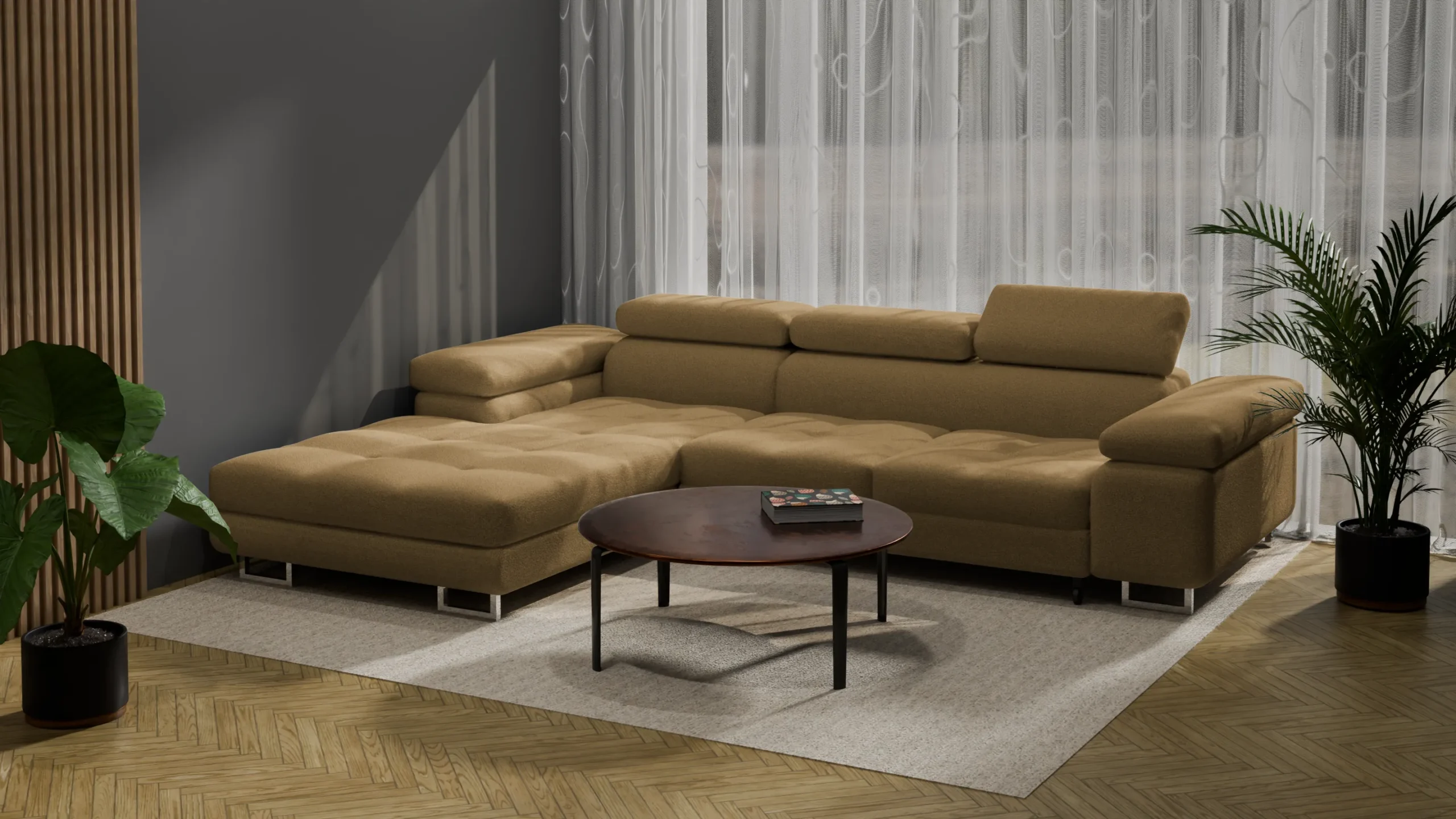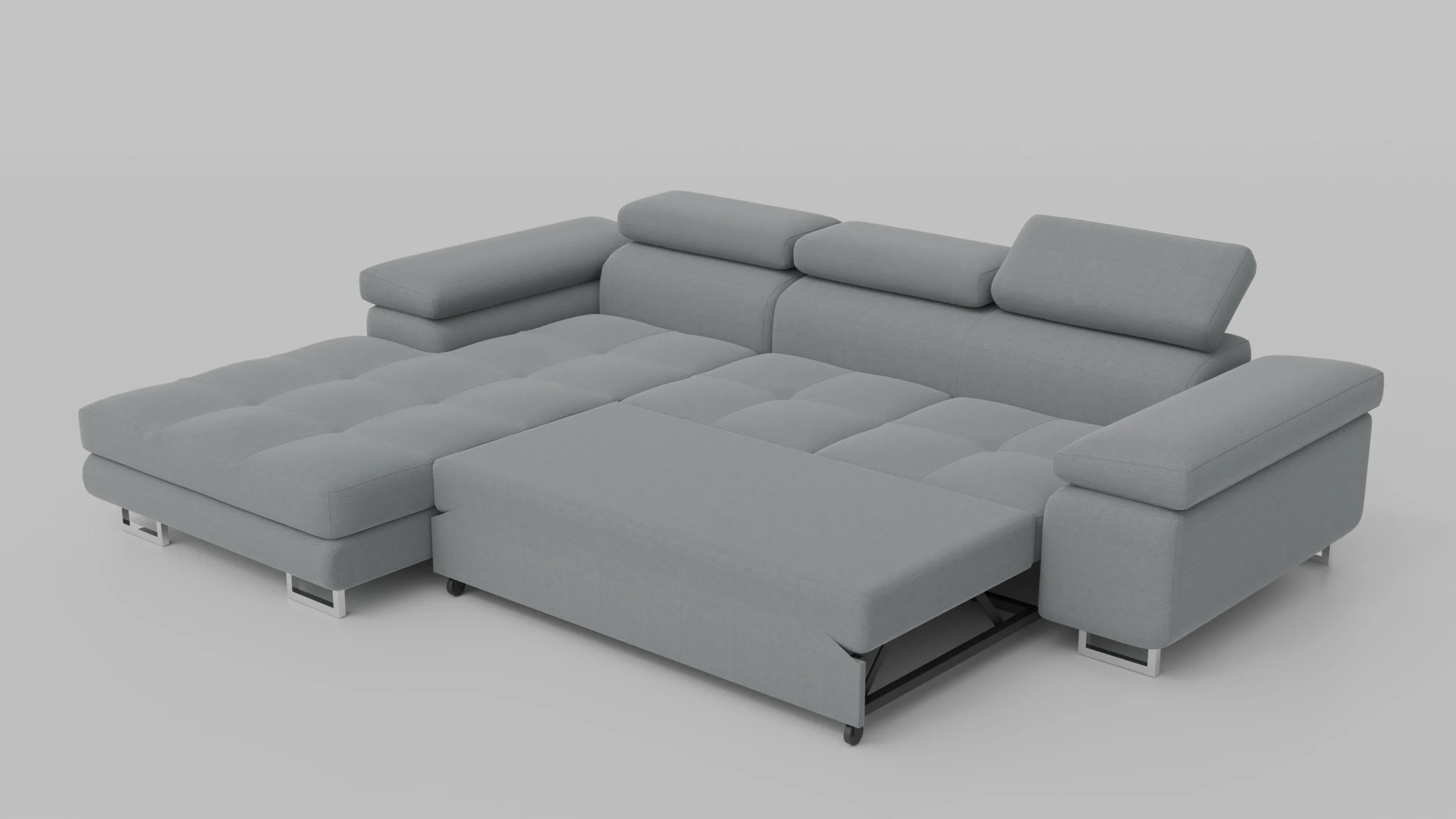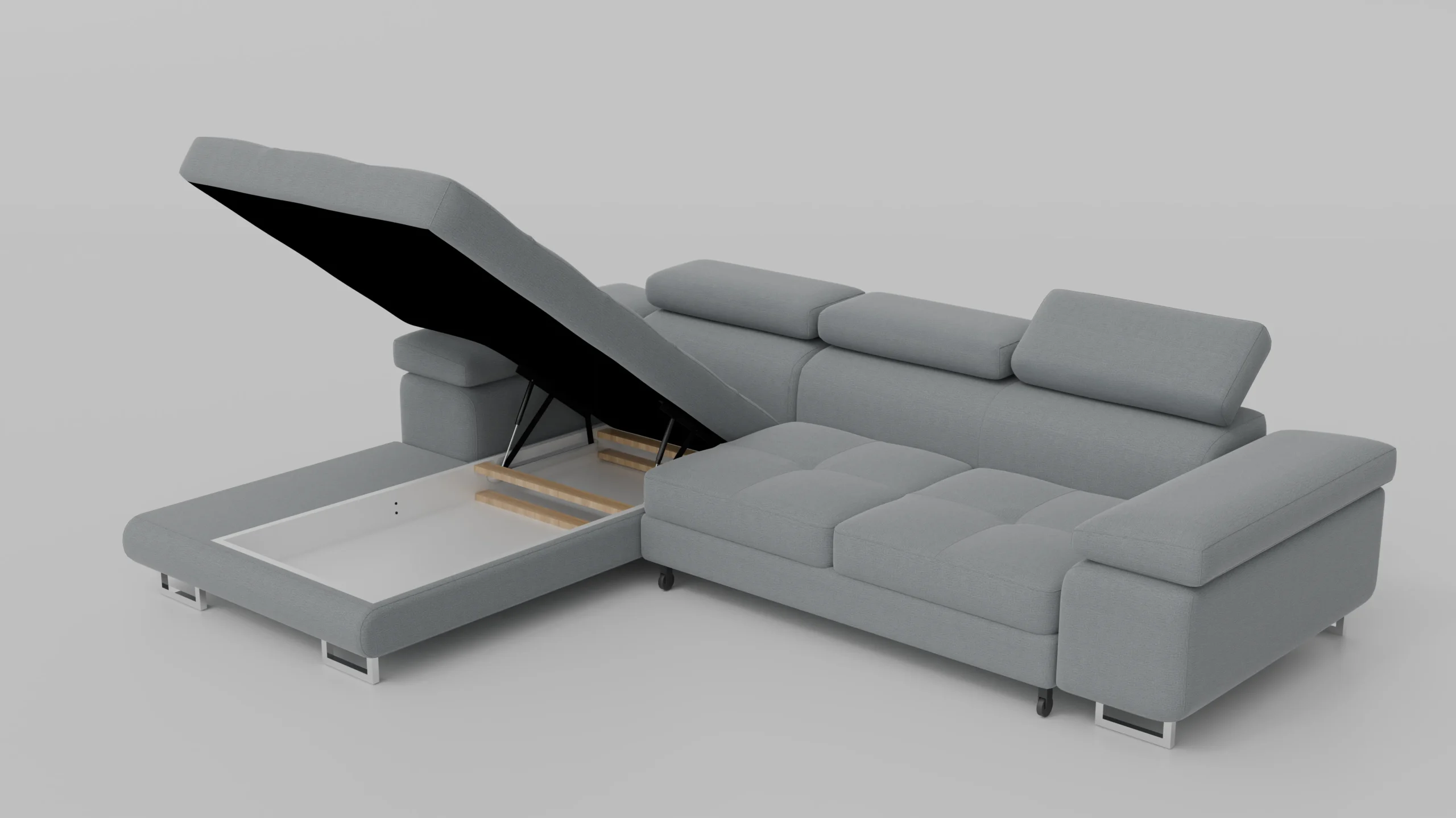 - Funkcja spania – narożnik z łatwością można rozłożyć, tworząc komfortową przestrzeń do snu. To doskonałe rozwiązanie, gdy chcesz przenocować gości lub wykorzystać narożnik jako dodatkowe łóżko.