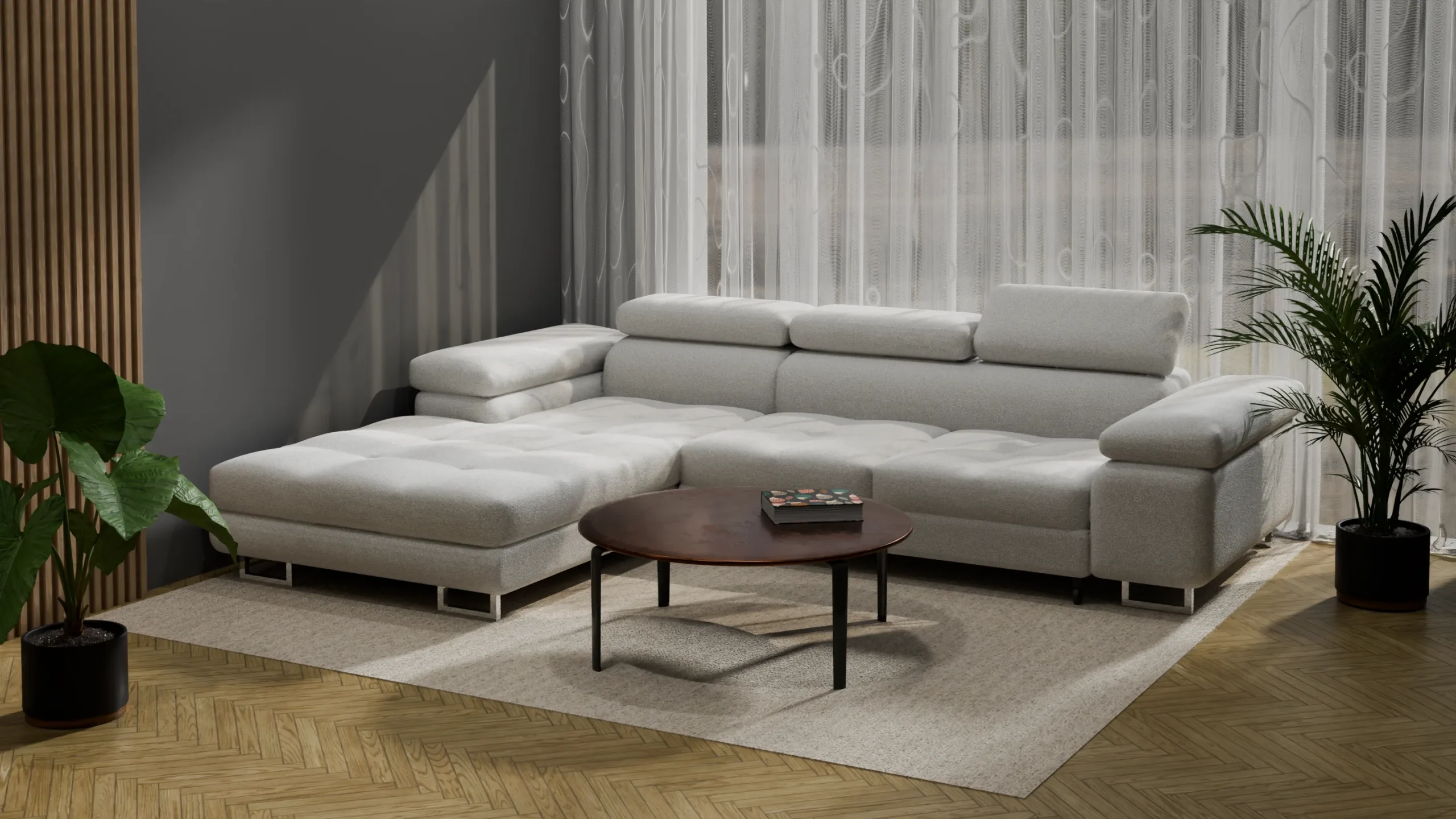 Agnes to narożnik, który doskonale wkomponuje się w różne style wnętrzarskie – od nowoczesnych i minimalistycznych po bardziej klasyczne aranżacje. Prosta bryła została urozmaicona miękkimi poduchami i regulowanymi zagłówkami, dzięki czemu całość wygląda elegancko i ponadczasowo.