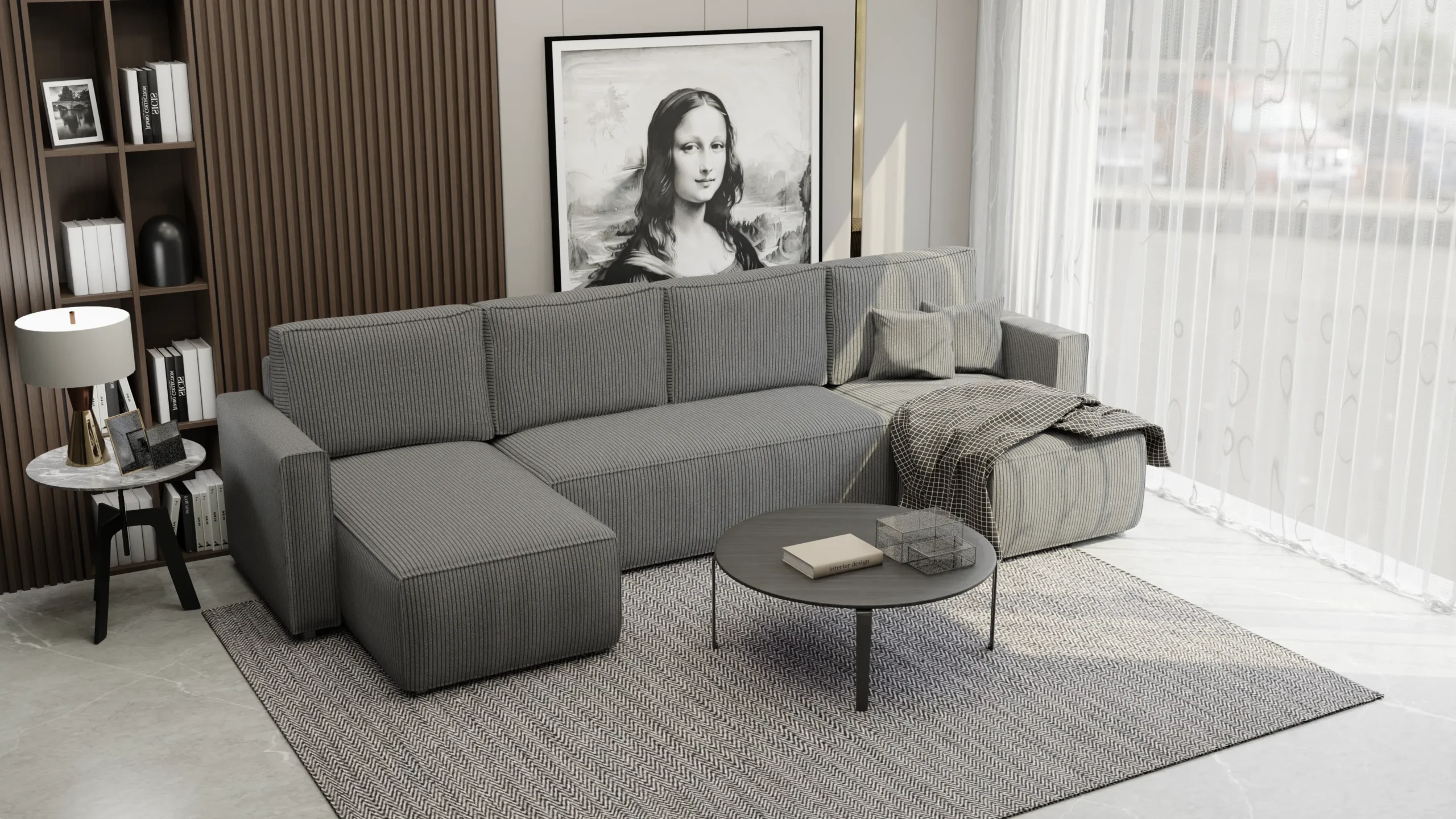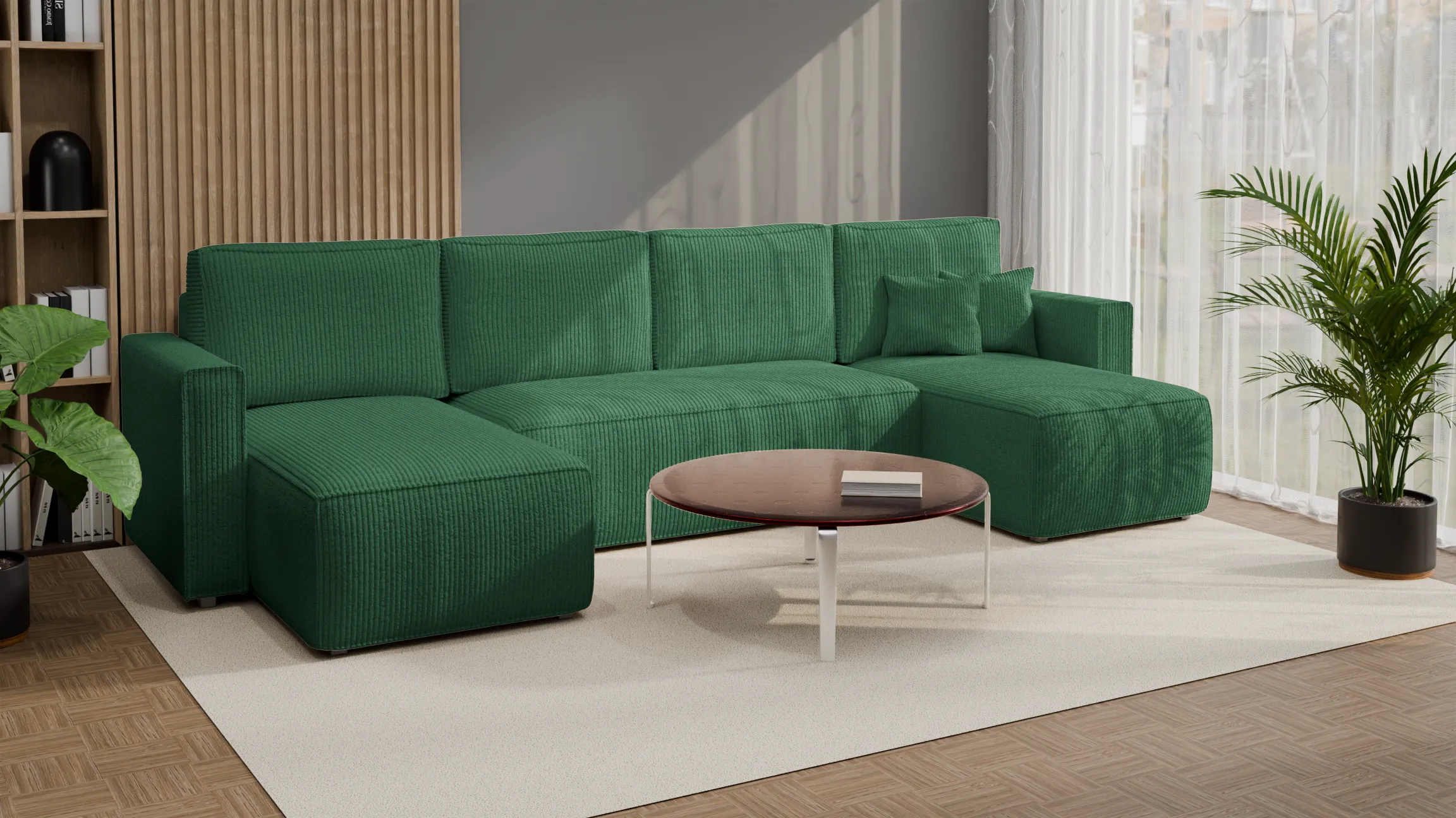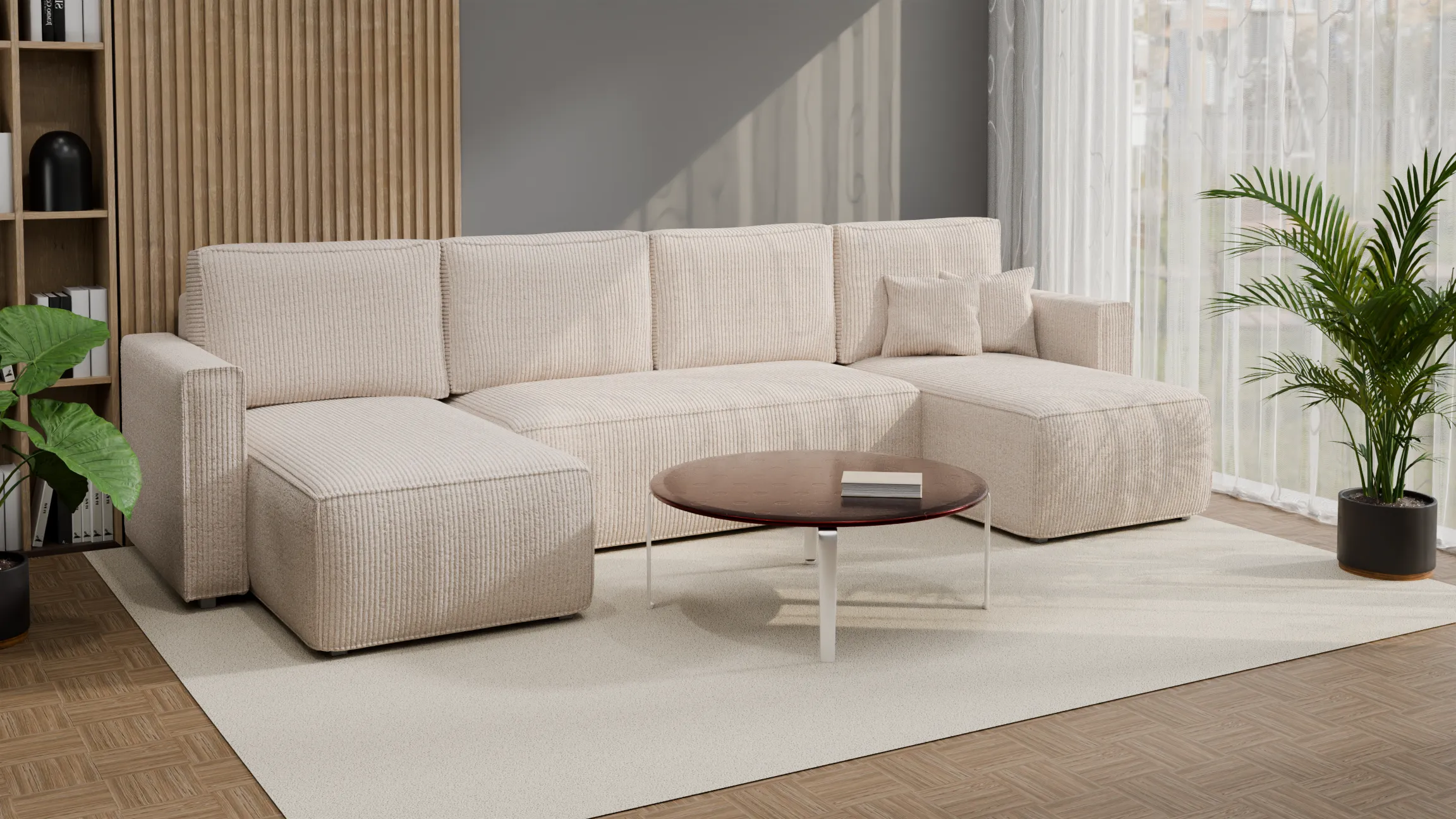 Narożnik Ares U to propozycja dla osób, które cenią sobie przestrzeń, wygodę i elegancki design. Jego kształt litery „U” sprawia, że jest to mebel idealny do większych wnętrz – doskonale wypełnia przestrzeń salonu, stając się centralnym punktem domowej strefy wypoczynku.