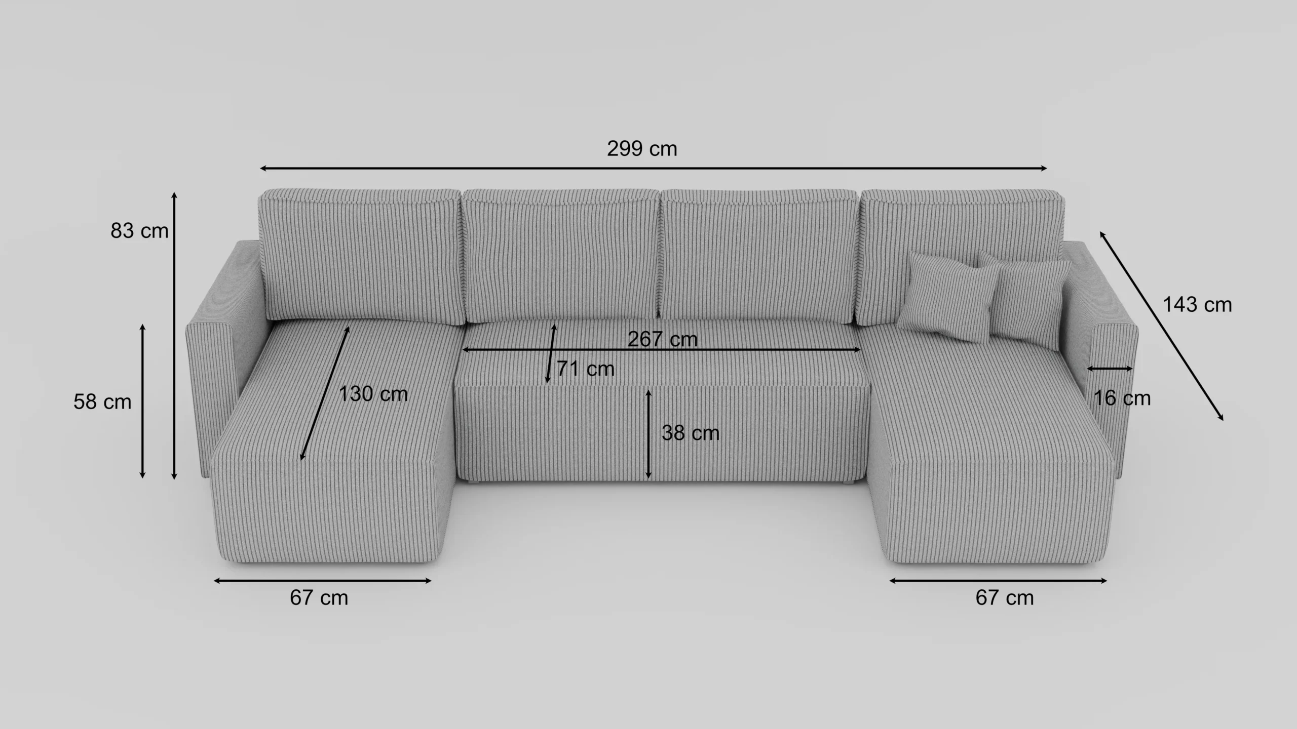 Narożnik Ares U to świetna propozycja dla rodzin oraz osób, które uwielbiają spędzać czas w gronie najbliższych. Jego duże wymiary sprawiają, że każdy znajdzie swoje wygodne miejsce – czy to na wieczorny seans filmowy, czy popołudniową drzemkę.