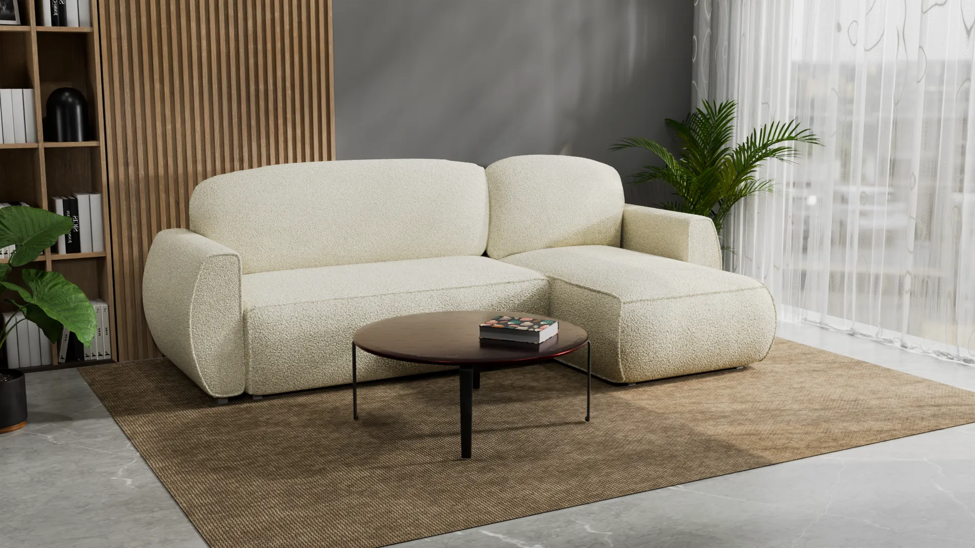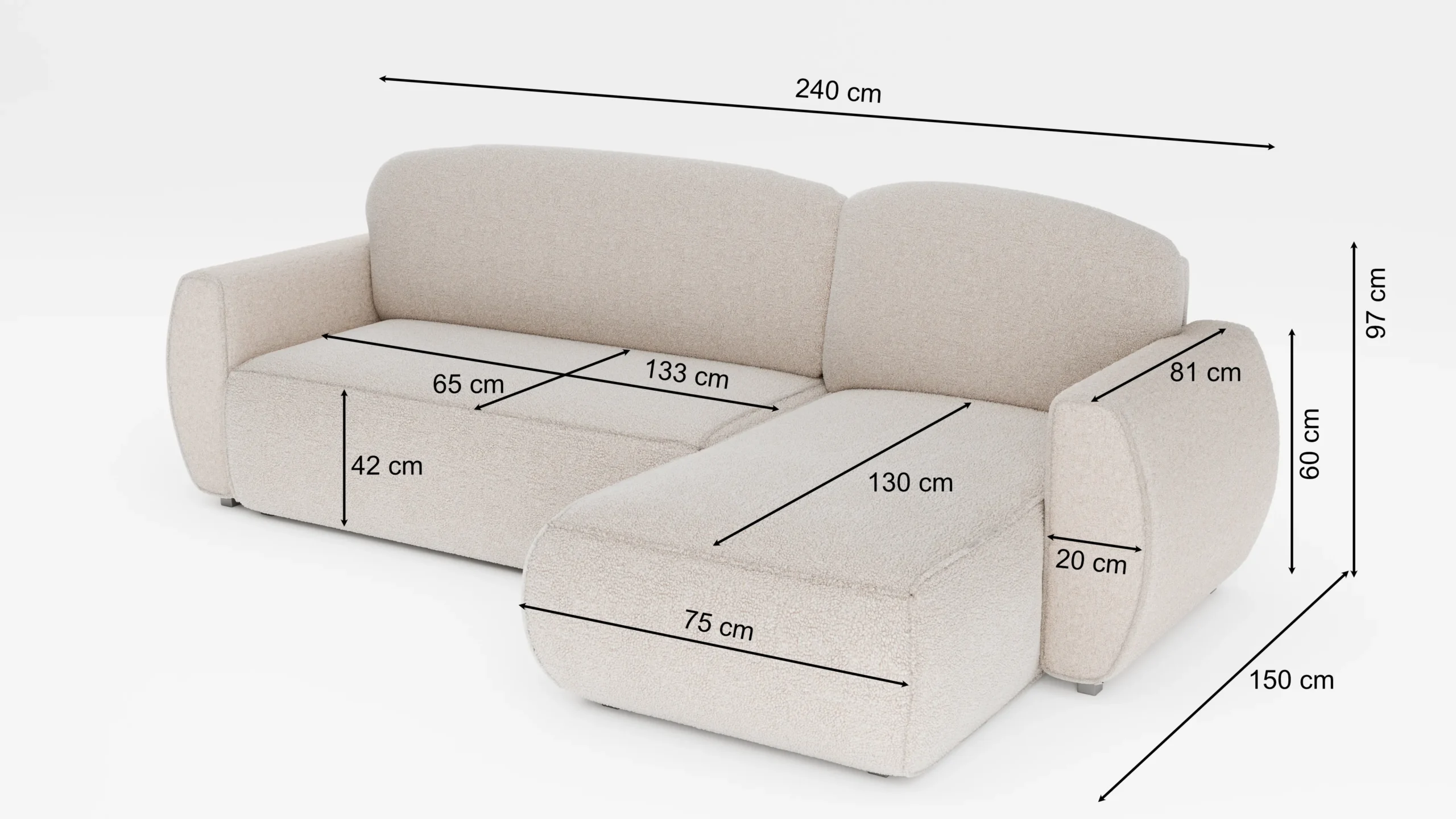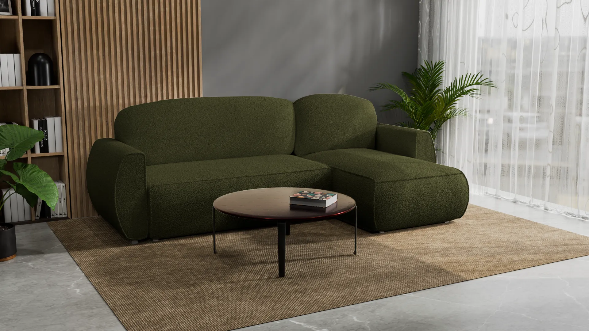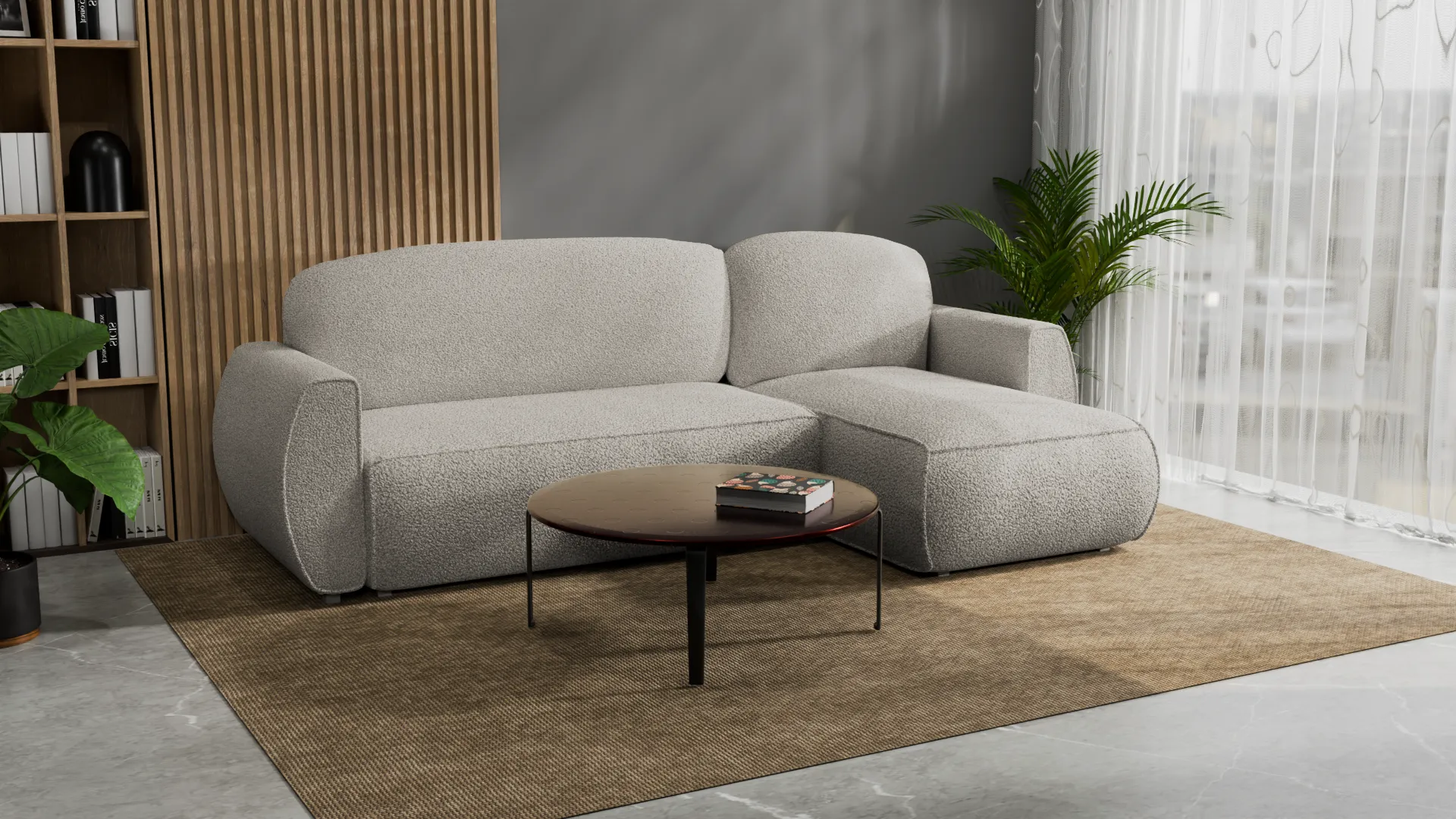 - Zaokrąglone boki dodają mu charakteru i sprawiają, że narożnik prezentuje się lekko i przytulnie.