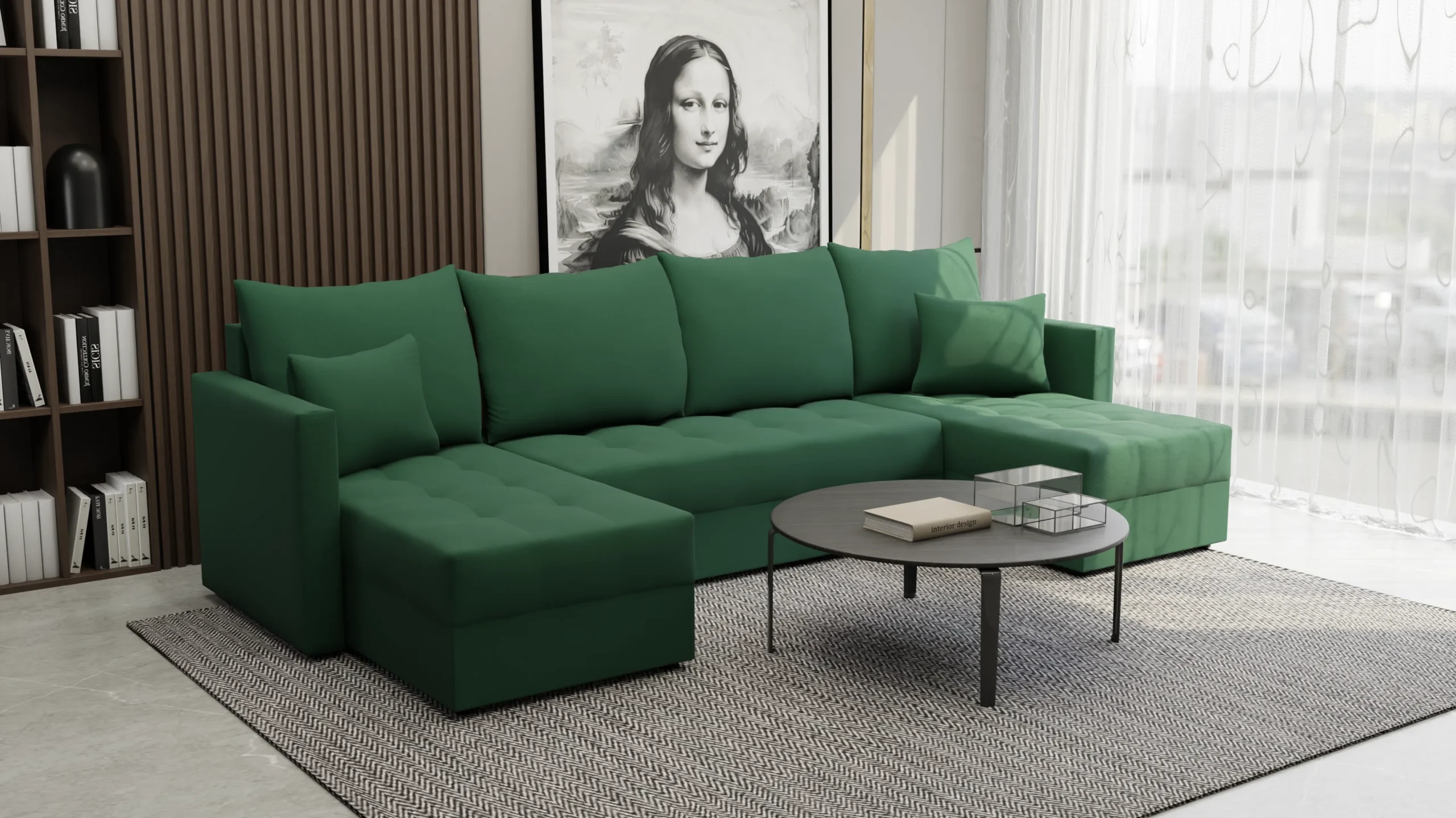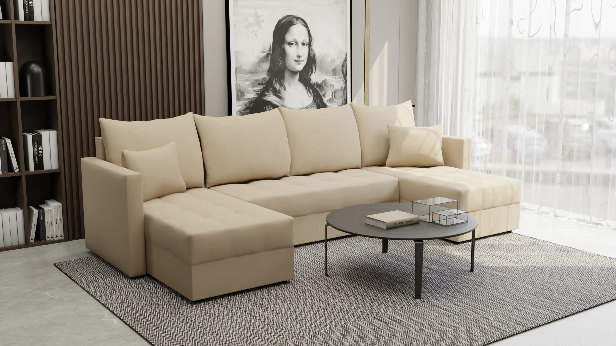 Figo U został zaprojektowany z myślą o najwyższym komforcie. Miękkie, duże poduchy oparciowe zapewniają wygodne podparcie pleców, a szerokie siedzisko gwarantuje relaks po całym dniu. Narożnik ma klasyczną formę w kształcie litery U, co sprawia, że idealnie nadaje się do spotkań rodzinnych czy przyjęć z przyjaciółmi – każdy znajdzie dla siebie wygodne miejsce.