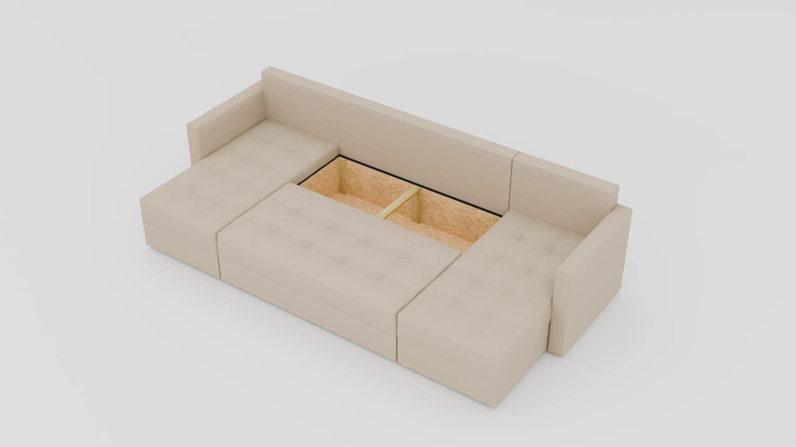 Pod siedziskiem narożnika znajduje się pojemny schowek, w którym można przechowywać pościel, koce czy dodatkowe poduszki. To funkcjonalne rozwiązanie pozwala utrzymać porządek w salonie i optymalnie wykorzystać przestrzeń.