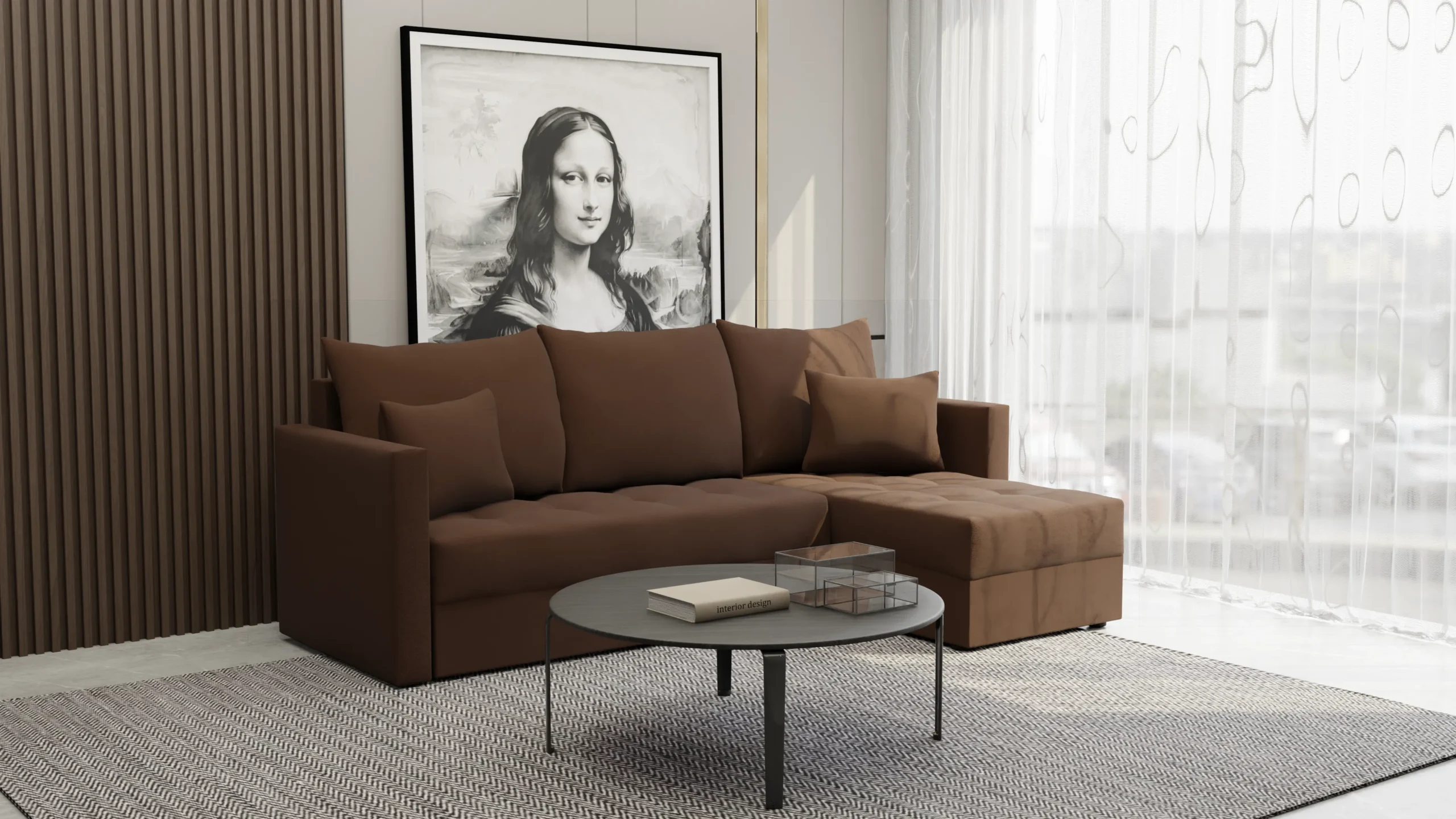 - Modułowa konstrukcja – narożnik dostępny jest w wersji z szezlongiem z prawej lub lewej strony, co ułatwia dopasowanie go do układu wnętrza.