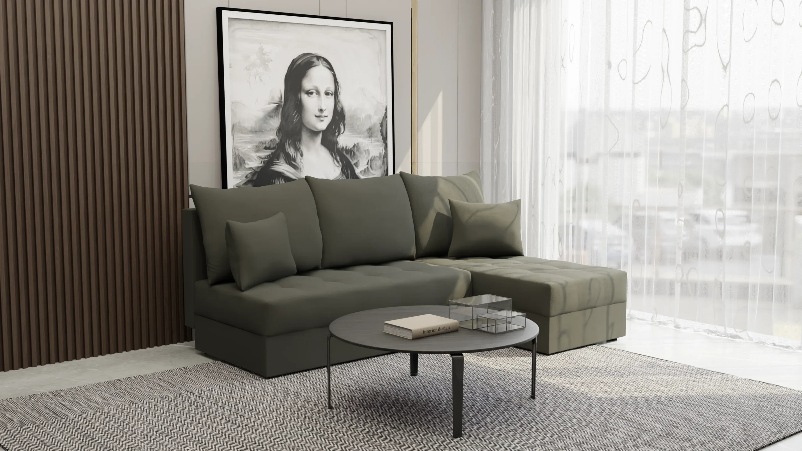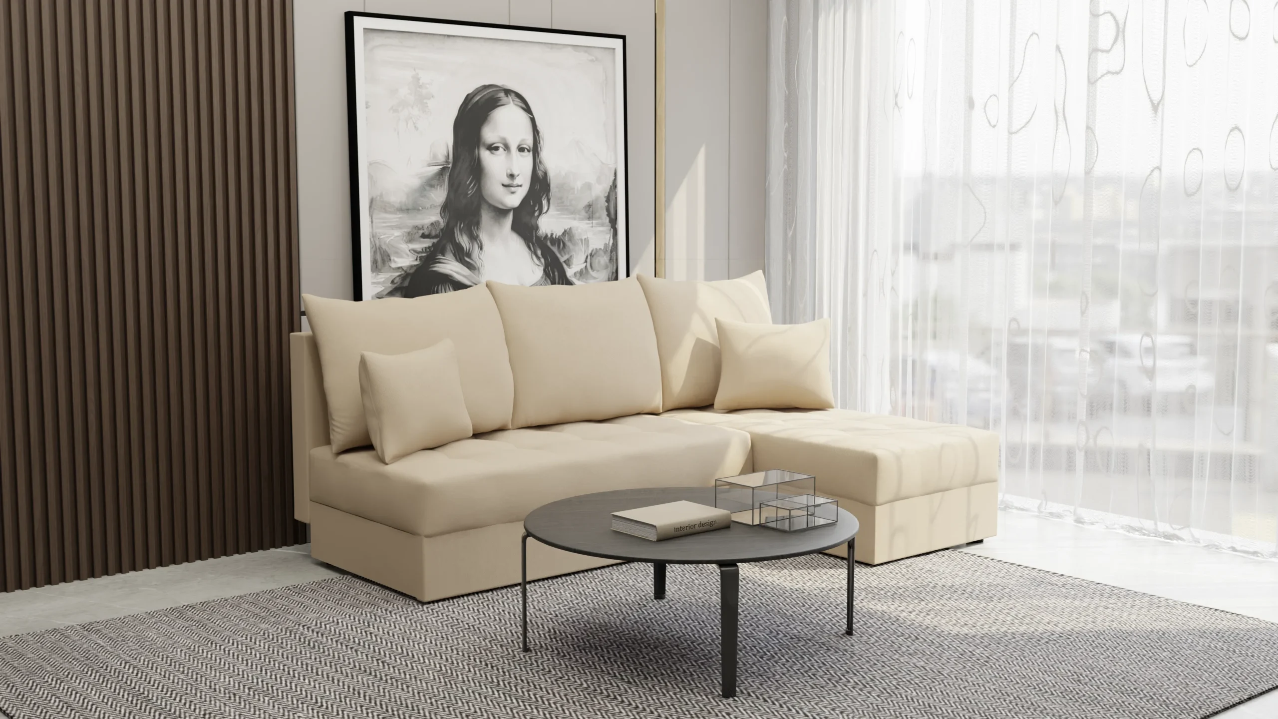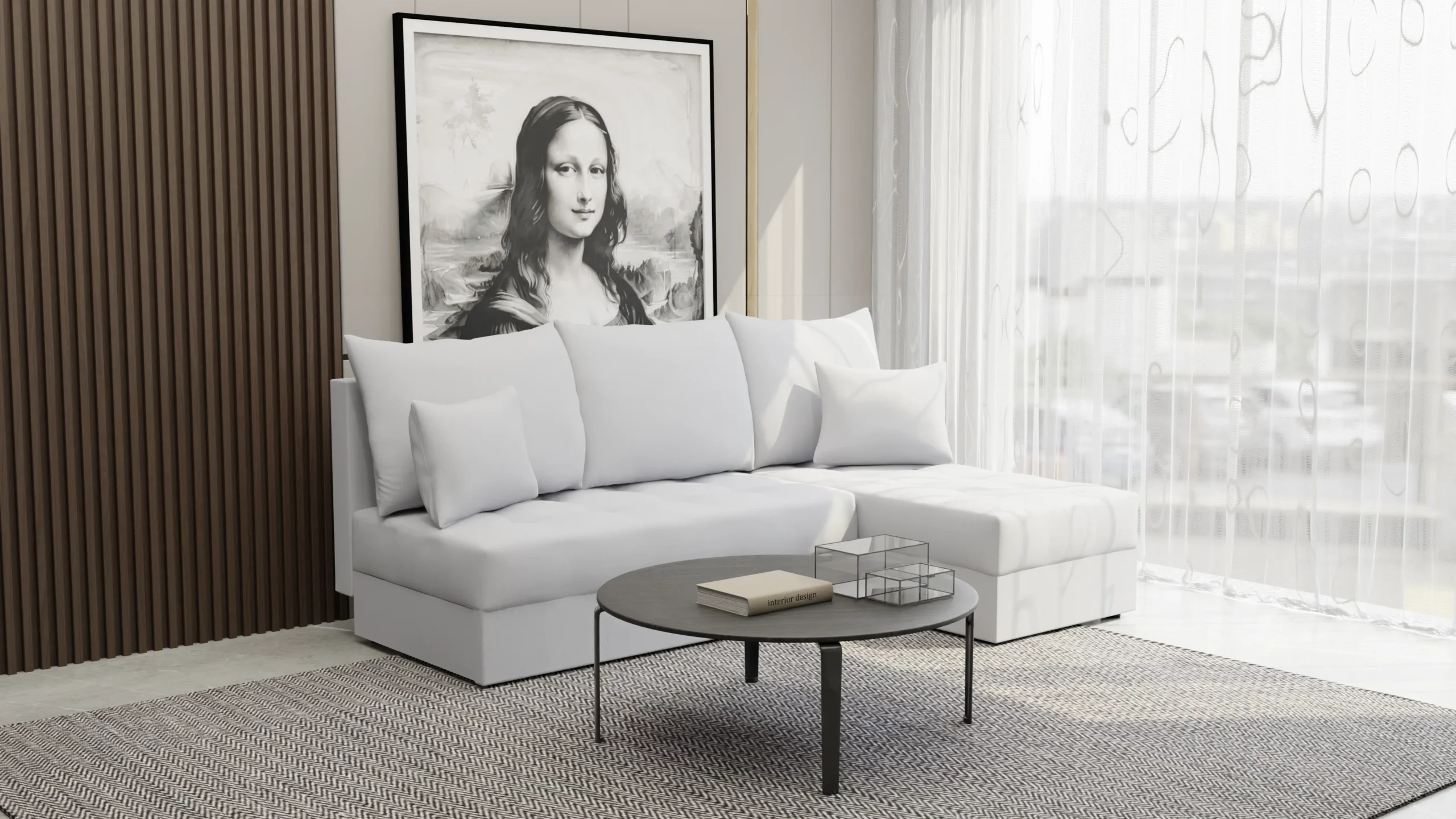 - Uniwersalna aranżacja – pasuje zarówno do dużego salonu, jak i mniejszego mieszkania.